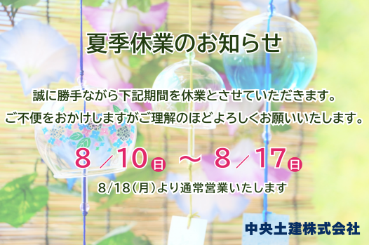 夏季休業日のお知らせ
