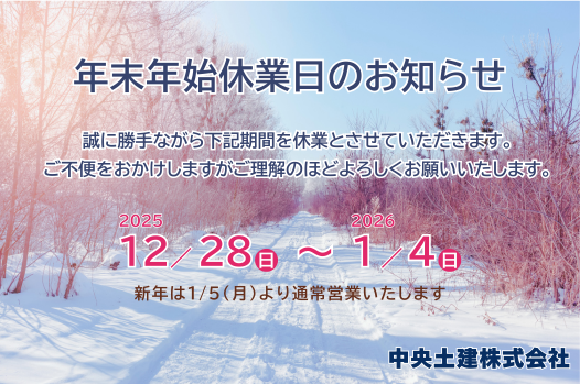 年末年始休業日のお知らせ