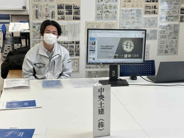 秋田県内企業70社がブースを作り説明会を行うなか、弊社も参加し中央土建の魅力をPRさせていただきました。