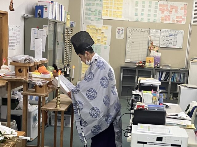 仕事始めに合わせ八幡秋田神社様から、一年間の安全を願い新年のご祈祷をしていただきました。